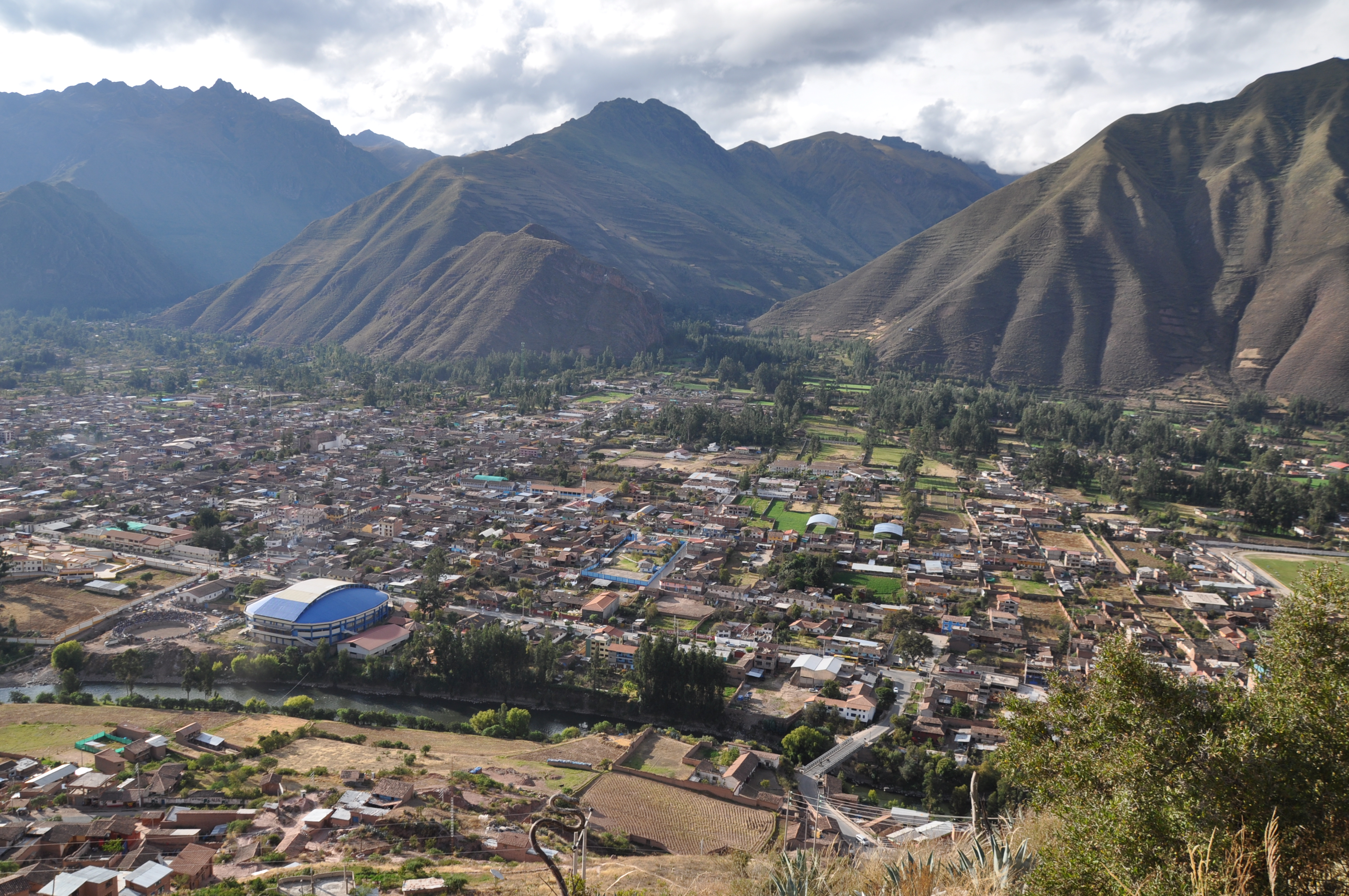 En Route from Ollantaytambo to Cusco: City with Stadium