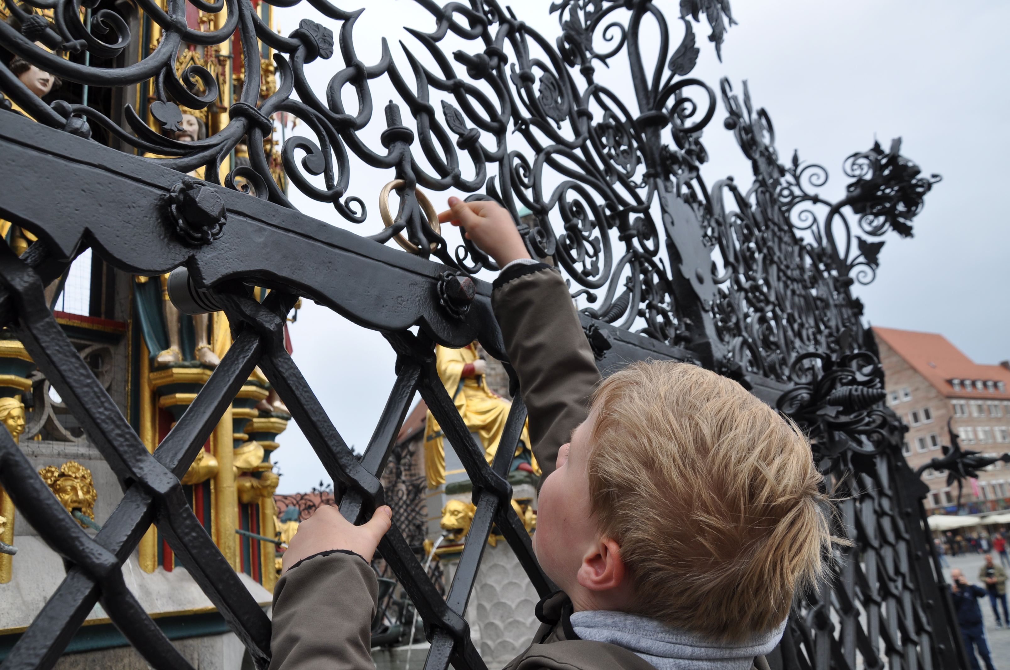 Trip to Nürnberg: Felix turning the ring of the fountain