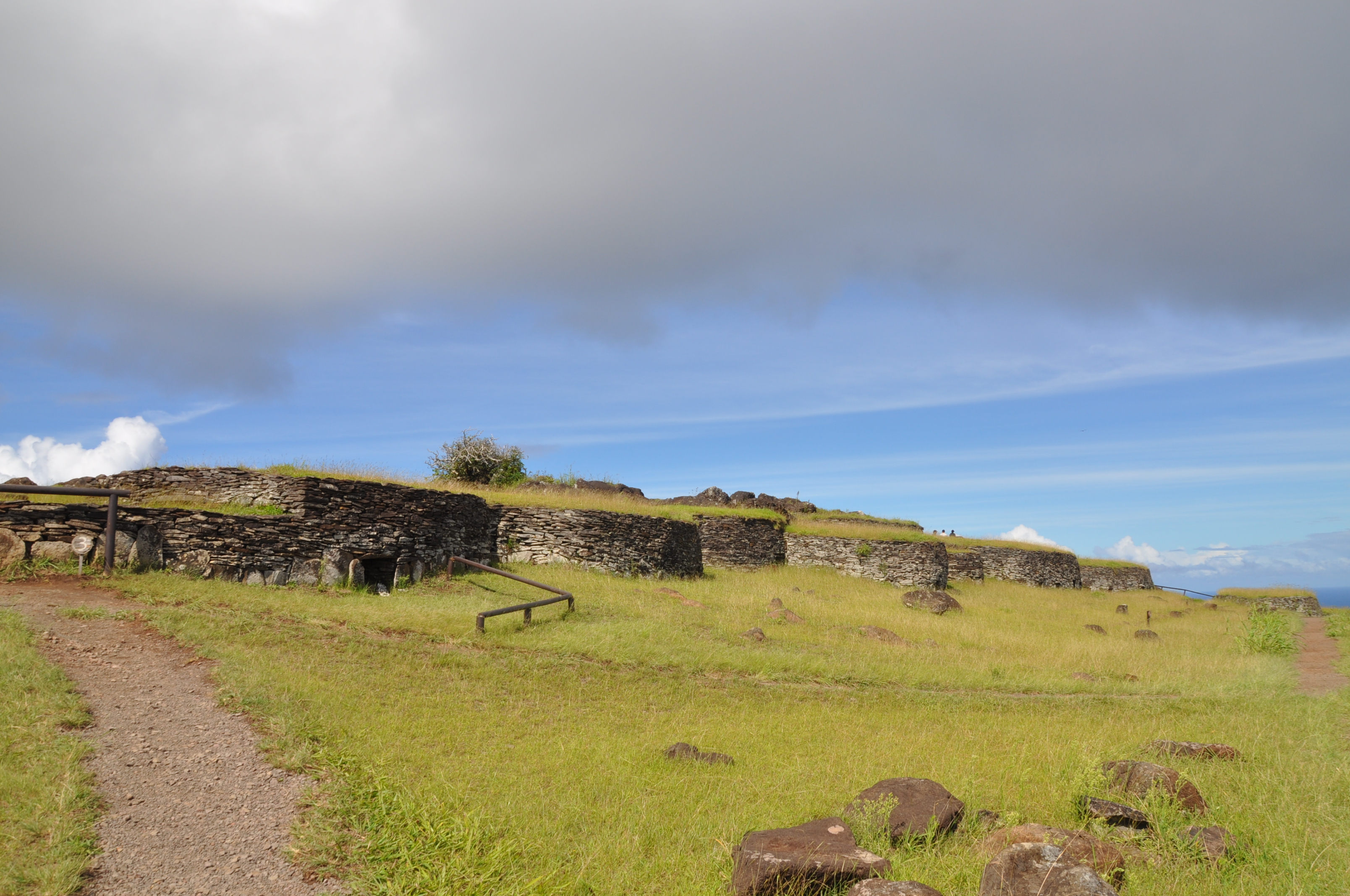 I then headed down to Orongo, a ceremonial village. From the 18th century, Orongo was used as the centre of the bird man cult: Annually, each chief of a clan would appoint up to 2 hopu (men of lesser status) who would  then  swim over to Motu Nui, an island off the coast of Easter Island, and wait for the return of the terns. The task was then to collect the first egg lain by a tern, and return it safely to the chief who was waiting in one of the stone huts of the ceremonial village. He would then be announced tangata-mangu, and went into seclusion in a special ceremonial house for a year. As  tangata-mangu, he was considered sacred for the next 5 months, and would be entitled to food gifts and other tributes. The race was very dangerous, and many hopus died in the process (falling of the cliffs, eaten by sharks, drowning, etc.). It cult stopped in the 1860’s,  when it was suppressed by Christian missionaries.