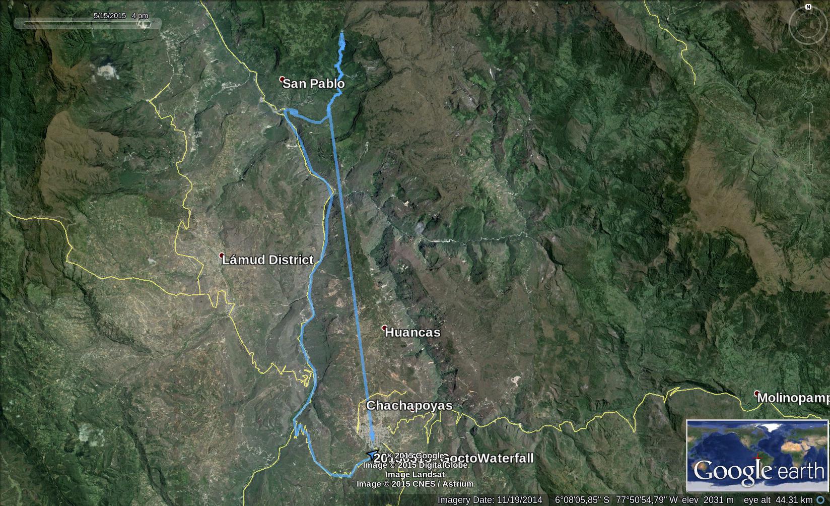 The last in my orange room in Chachapoyas. I took a tour to the waterfall of Gopta. With a drop of 771 meters, it is the third highest waterfall in the world. Certainly known to the locals, it was not on any map until 2002, when a German development aid worker hiked through the Utcabamba valley and discovered it.