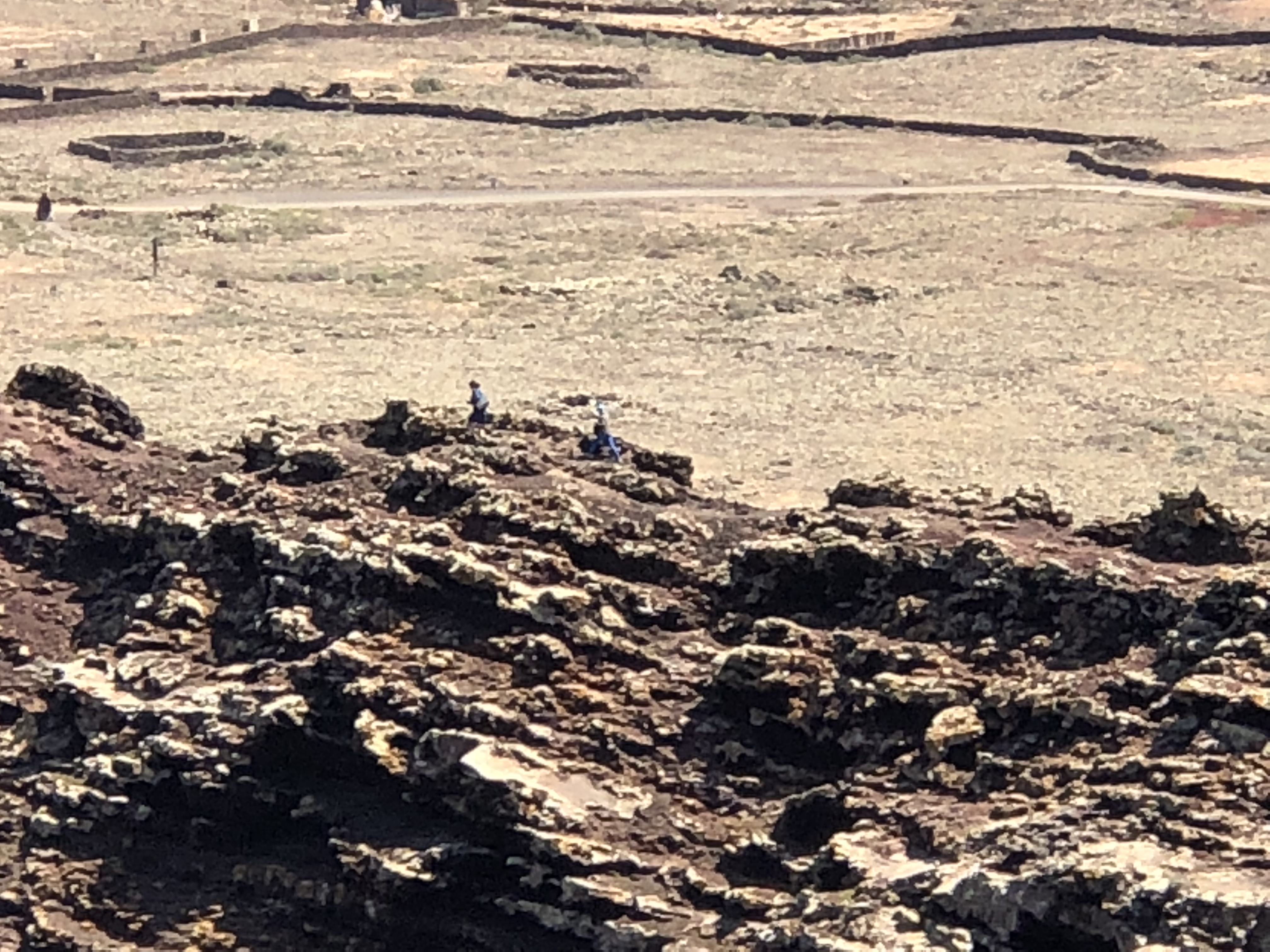 After hanging out a couple of days, it became time for some action. So Gisela, Felix, my mother, and I rented a car and went to a extinct vulcano near Lajares. We parked the car nearby and started to hike up to the crater rim. Gisela and Felix went ahead, and I and my mother followed. My mother and I decided to leave charted territory and go straight up to rim of the crater. This turned out to be more difficult than anticipated. The slope was steeper than it had looked from below and with every step the gravel under our feet would start to slide down. We managed to get to the top without casualties and were rewarded with a terrific view. We went around the crater rim to a viewing platform where we catched up with Felix and Gisela who had found new friends by now: A bunch of squirls liked Felix and Gisela for being hand-fed.