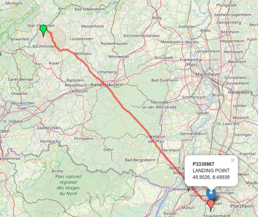 Continuing my drive back to Stuttgart, I received another RS41 probe launched from Idar-Oberstein near Karlsbad that had landed in a forest:
